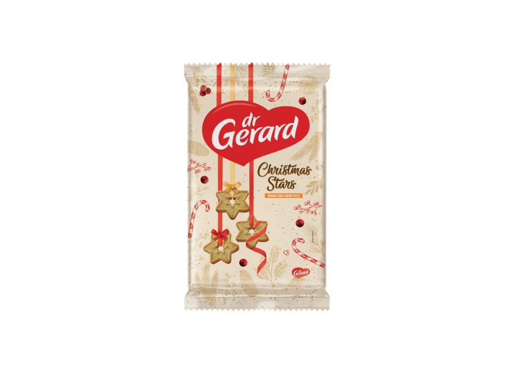 Vánoce s Dr. Gerard křehké sušenky s kousky kandovaného ovoce: švestky a citrónová a pomerančová kůra ve tvaru hvězdiček s vánočními vzory.