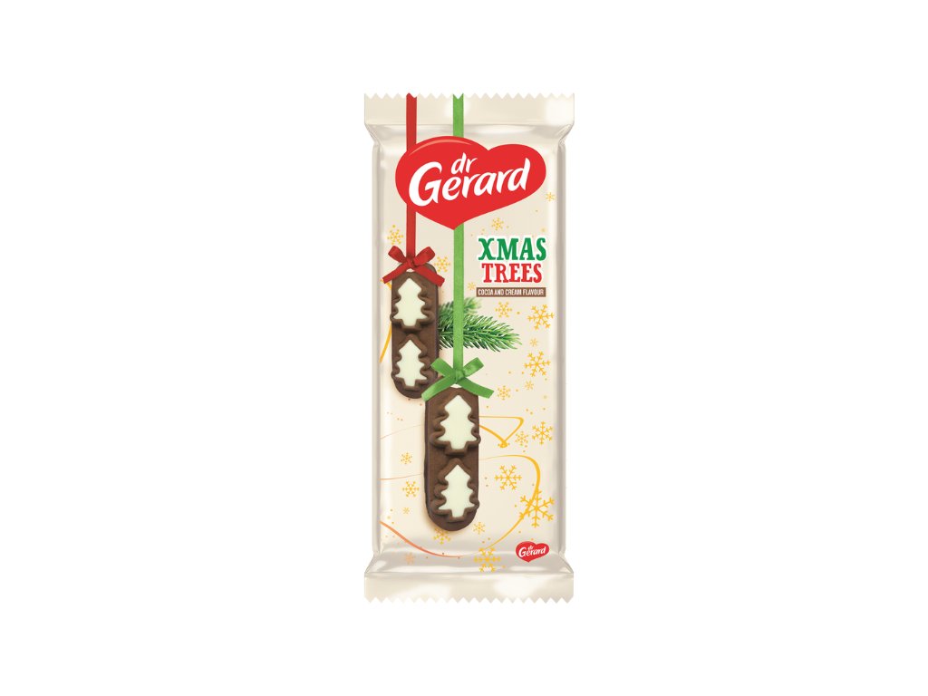 Vánoce s Dr. Gerard - křehké kakaové sušenky s krémovou nádivkou, polité kakaovou polevou - vánoční stromky 170g.