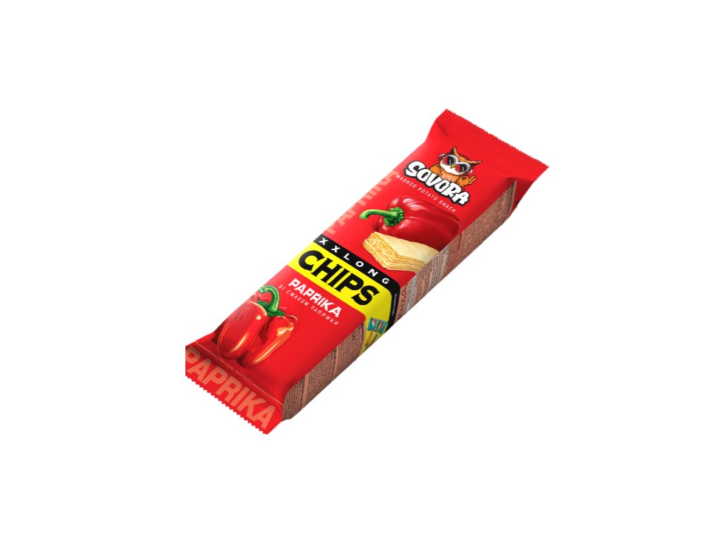 Složení: Bramborové vločky 42% (brambory (99,3%), emulgátor: mono- a diglyceridy, stabilizátor: difosforečnany, kyselina citrónová, antioxidant: askorbylpalmitát), rafinovaný slunečnicový olej s vysokým obsahem kyseliny olejové, pšeničná mouka, kukuřičná mouka, ochucovací směs „Paprika“ (sůl, glukóza potravinářská, maltodextrin, cukr, aroma, prášková paprika, zvýrazňovače chuti a aroma: E621, E627, E631, protispálený prostředek E551, barvivo E160c), prašková červená paprika, sůl.