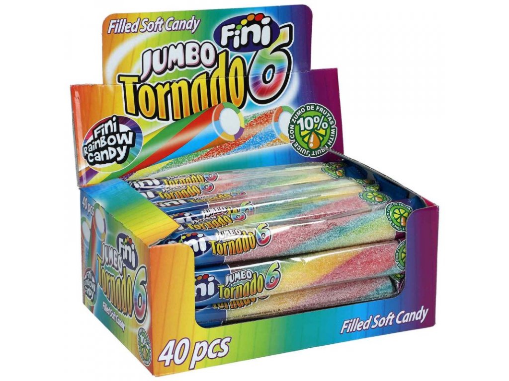Složení: cukr, glukózo-fruktózový sirup, pšeničná mouka, koncentrát ovocné šťávy 10 % (směs ovoce), kukuřičný škrob, kyselina: E296, želatina, palmový tuk, kyseliny: E270, E330, aromata (ovocná), regulátor kyselosti: E325, E331, sůl, emulgátor: E471, zvlhčující látka: E422, barviva (E100, E120, E133, E163).