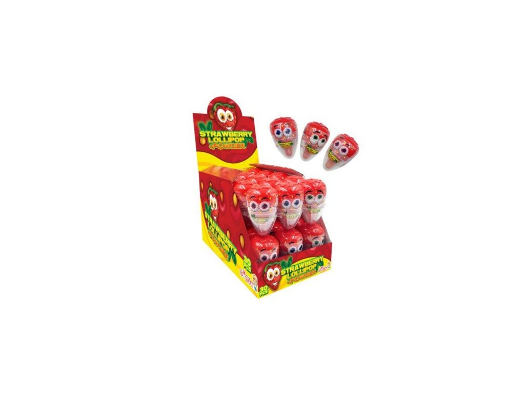Složení: lízátko: cukr, kukuřičný sirup, kyselina citronová, potravinářské aroma (jahoda), přírodní barviva (E162). Prášek: glukóza, glukózový sirup, kyselina citronová, potravinářské aroma (borůvka), barvivo E133.