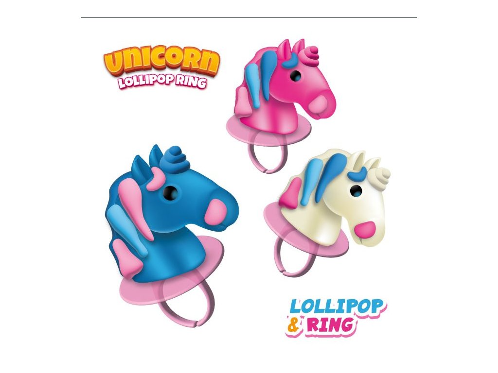 Lízátko na prstýnek ve tvaru jednorožce.
