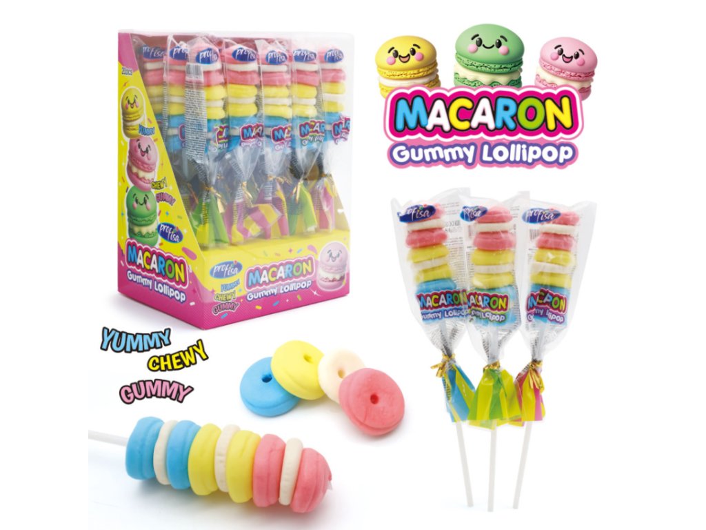 Složení: maltózový sirup, cukr, voda, jablečná šťáva, želatina, zahušťovadla (E440, E1401, E1420), sorbitol, regulátory kyselosti (E296, E330, E331), leštící látka E903, aroma, barviva (E102, E129, E133).